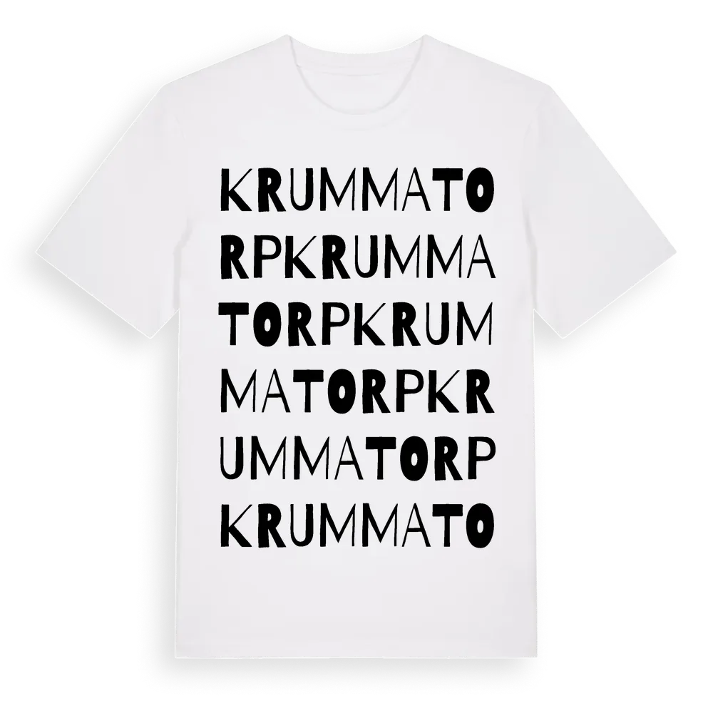 Krummatorp ordlek t-shirt är inspirerad av Krummatorp i Kronobergs län, Sverige. Tröjan är designad för dig som har en speciell koppling till platsen – oavsett om du bor här, har rötterna här eller bara älskar Krummatorp.