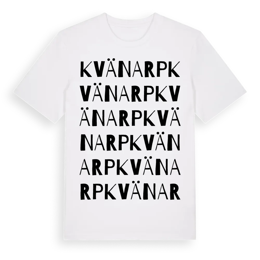 Kvänarp ordlek t-shirt är inspirerad av byn Kvänarp i Kronobergs län, Sverige. Tröjan är designad för dig som har en speciell koppling till platsen – oavsett om du bor här, har rötterna här eller bara älskar Kvänarp.