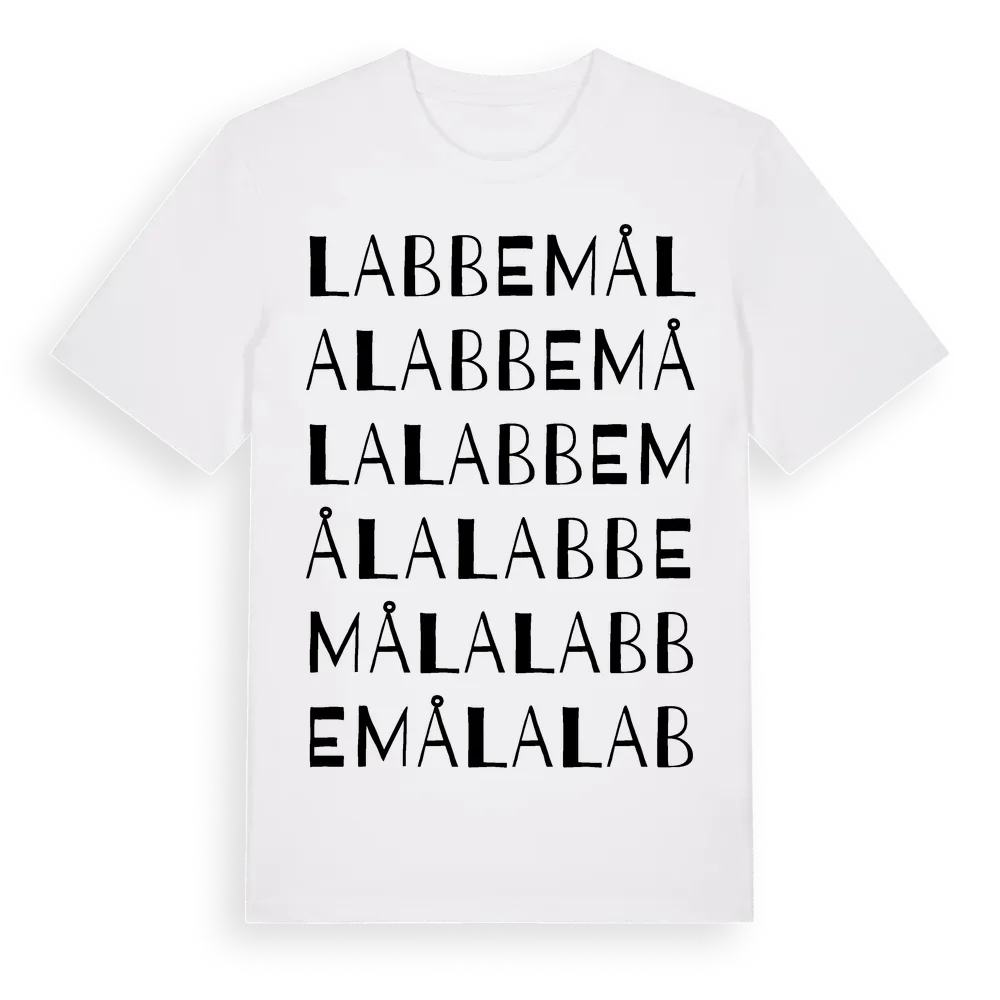 Labbemåla ordlek t-shirt är inspirerad av byn Labbemåla i Kronobergs län, Sverige. Tröjan är designad för dig som har en speciell koppling till platsen – oavsett om du bor här, har rötterna här eller bara älskar Labbemåla.