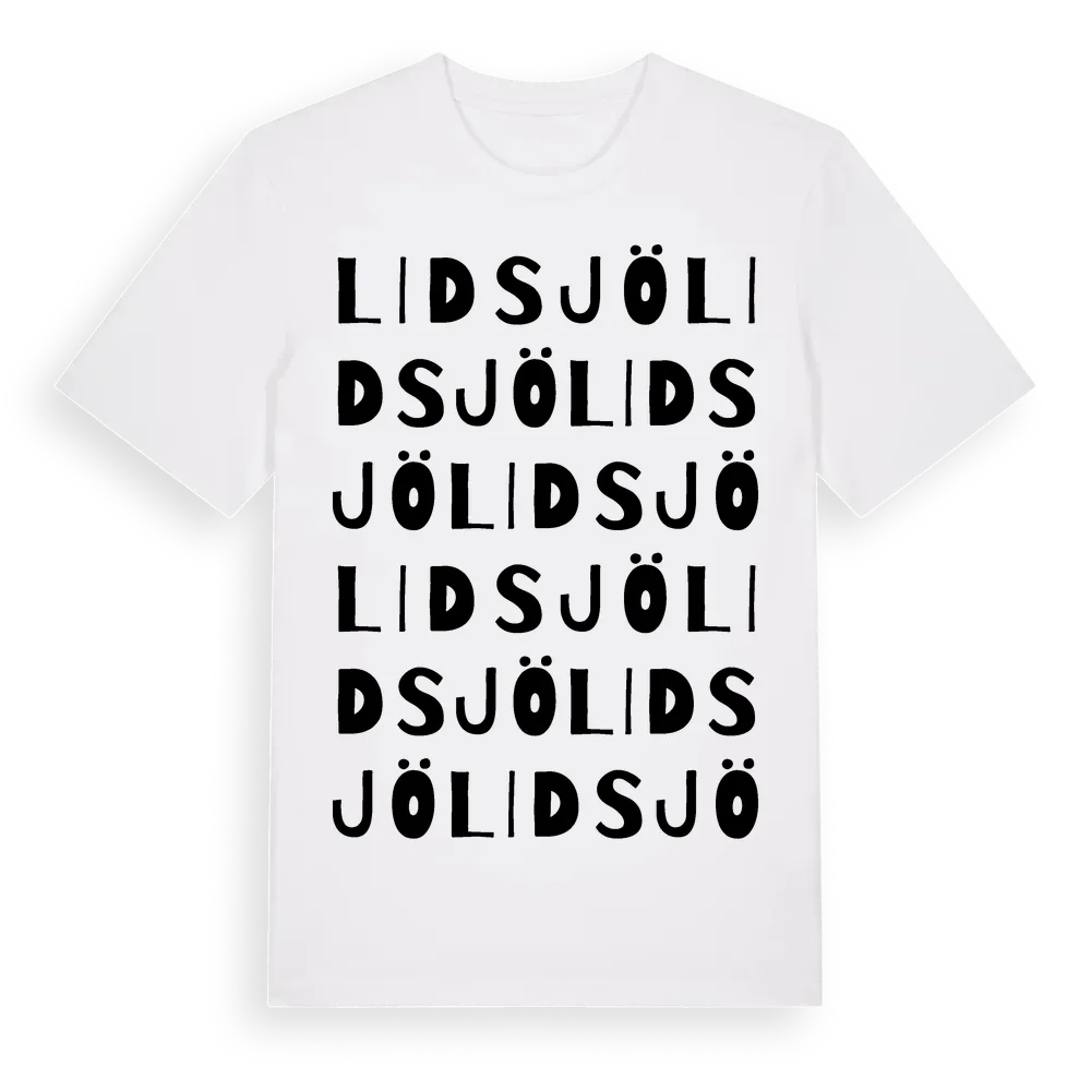 Lidsjö ordlek t-shirt är inspirerad av Lidsjö i Kronobergs län, Sverige. Tröjan är designad för dig som har en speciell koppling till platsen – oavsett om du bor här, har rötterna här eller bara älskar Lidsjö.