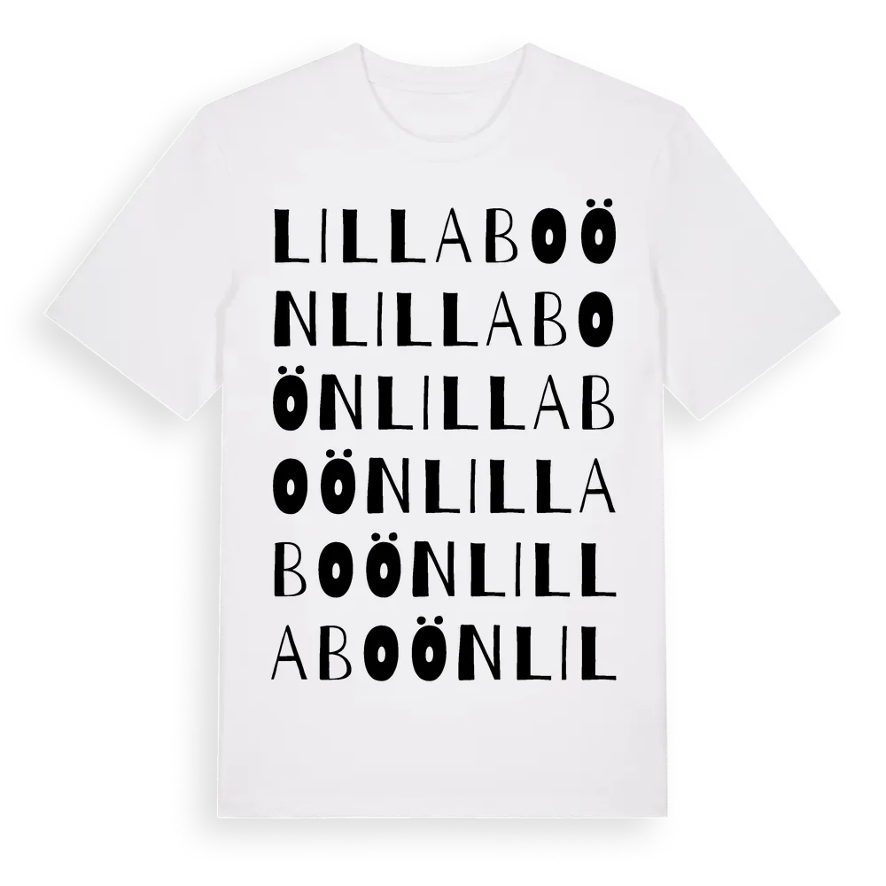 Lilla Boön ordlek t-shirt är inspirerad av Lilla Boön i Kronobergs län, Sverige. Tröjan är designad för dig som har en speciell koppling till platsen – oavsett om du bor här, har rötterna här eller bara älskar Lilla Boön.