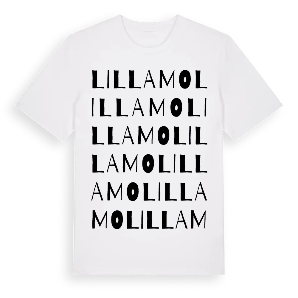 Lilla Mo ordlek t-shirt är inspirerad av Lilla Mo i Kronobergs län, Sverige. Tröjan är designad för dig som har en speciell koppling till platsen – oavsett om du bor här, har rötterna här eller bara älskar Lilla Mo.