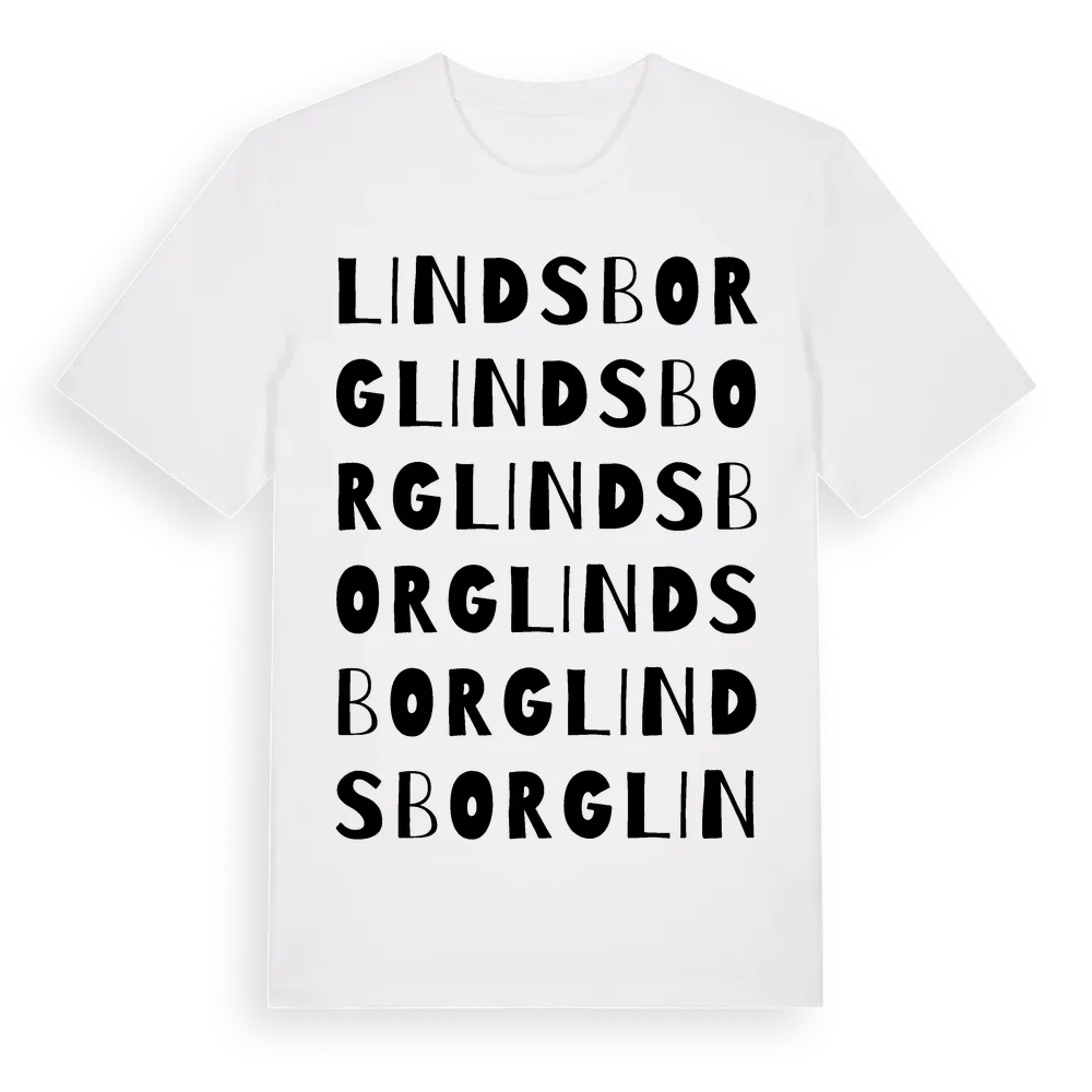 Lindsborg ordlek t-shirt är inspirerad av Lindsborg i Kronobergs län, Sverige. Tröjan är designad för dig som har en speciell koppling till platsen – oavsett om du bor här, har rötterna här eller bara älskar Lindsborg.
