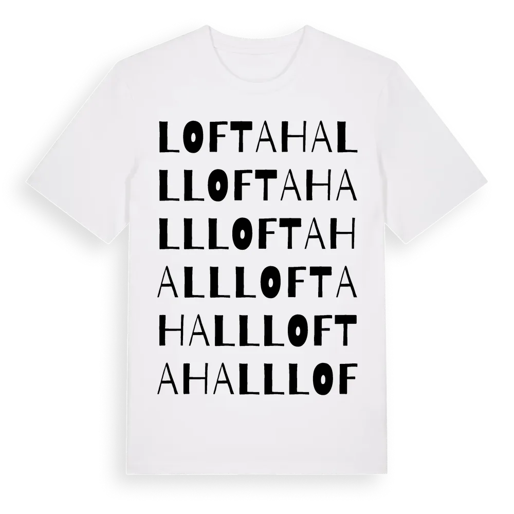 Loftahall ordlek t-shirt är inspirerad av Loftahall i Kronobergs län, Sverige. Tröjan är designad för dig som har en speciell koppling till platsen – oavsett om du bor här, har rötterna här eller bara älskar Loftahall.