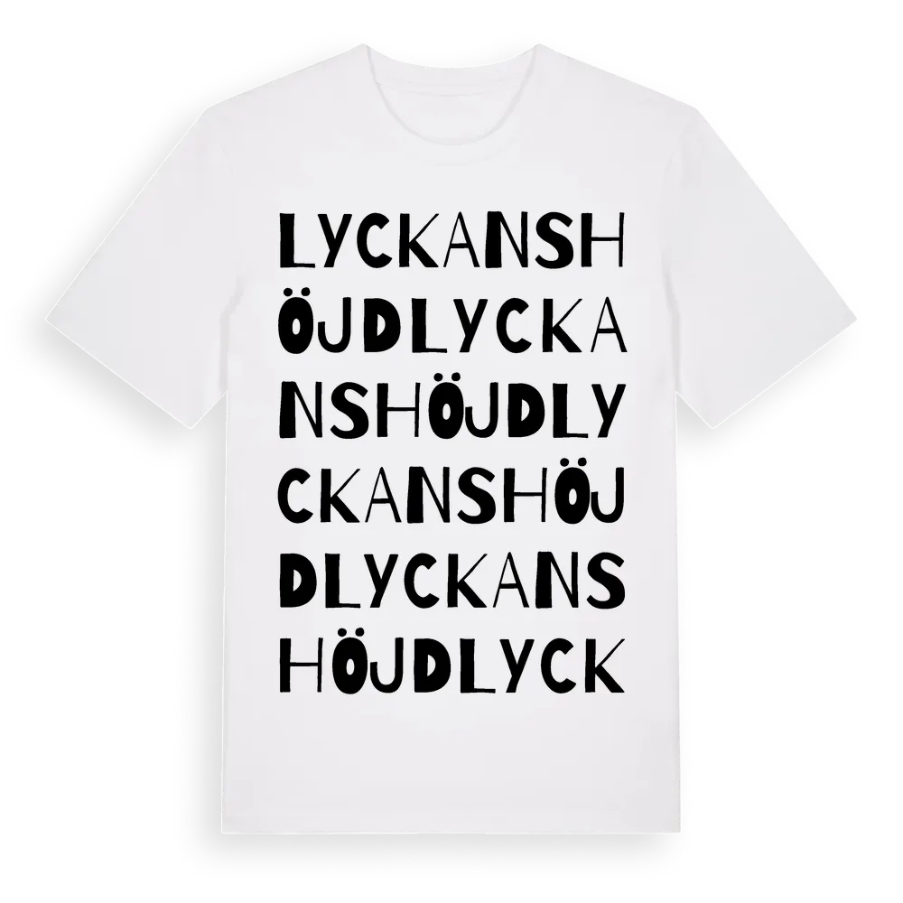 Lyckanshöjd ordlek t-shirt är inspirerad av Lyckanshöjd i Kronobergs län, Sverige. Tröjan är designad för dig som har en speciell koppling till platsen – oavsett om du bor här, har rötterna här eller bara älskar Lyckanshöjd.
