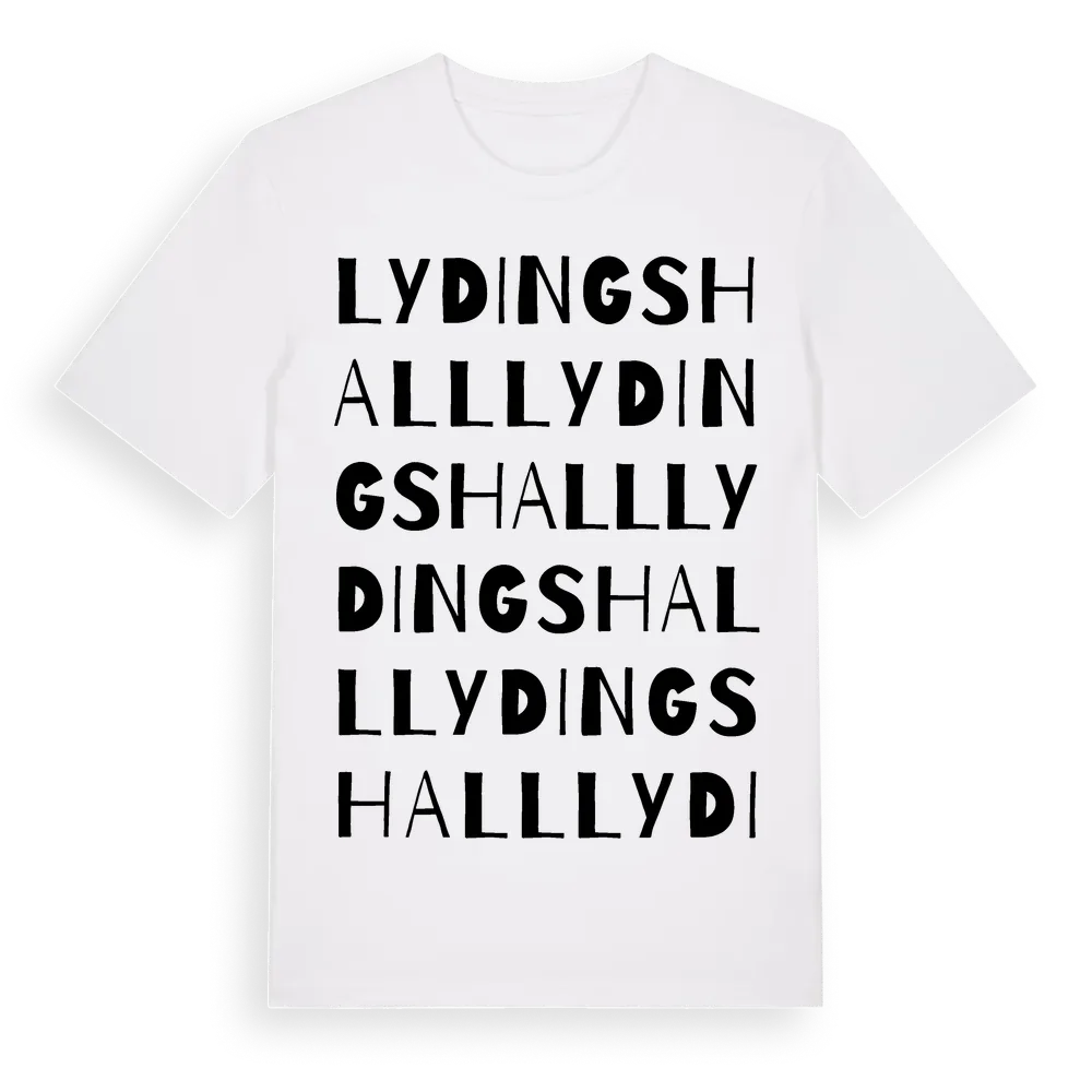 En ordlek byggd på Lydingshalls namn. Subtilt och klurig – ett motiv som bara de som verkligen känner platsen fullt ut förstår. Premium bomull, unisex – från Lydingshall i Kronobergs län.