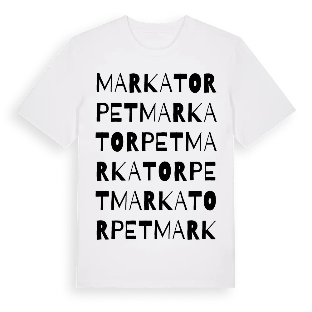 Markatorpet ordlek t-shirt är inspirerad av Markatorpet i Kronobergs län, Sverige. Tröjan är designad för dig som har en speciell koppling till platsen – oavsett om du bor här, har rötterna här eller bara älskar Markatorpet.