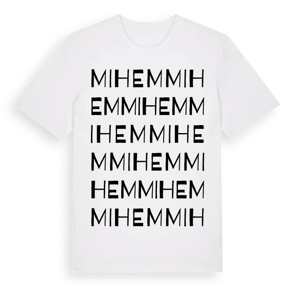 Mihem ordlek t-shirt är inspirerad av byn Mihem i Kronobergs län, Sverige. Tröjan är designad för dig som har en speciell koppling till platsen – oavsett om du bor här, har rötterna här eller bara älskar Mihem.