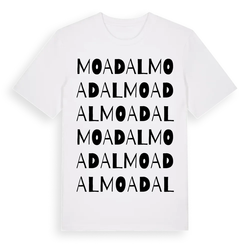 Moadal ordlek t-shirt är inspirerad av Moadal i Kronobergs län, Sverige. Tröjan är designad för dig som har en speciell koppling till platsen – oavsett om du bor här, har rötterna här eller bara älskar Moadal.