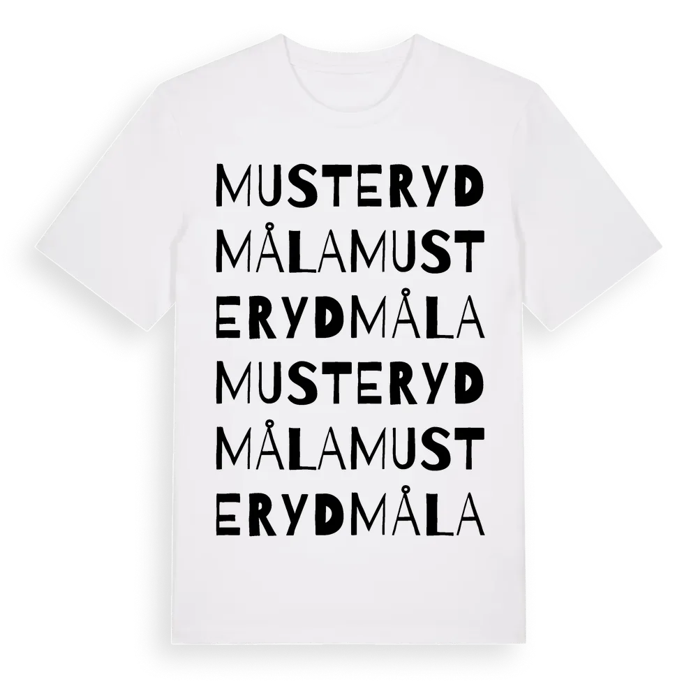 Musterydmåla ordlek t-shirt är inspirerad av Musterydmåla i Kronobergs län, Sverige. Tröjan är designad för dig som har en speciell koppling till platsen – oavsett om du bor här, har rötterna här eller bara älskar Musterydmåla.