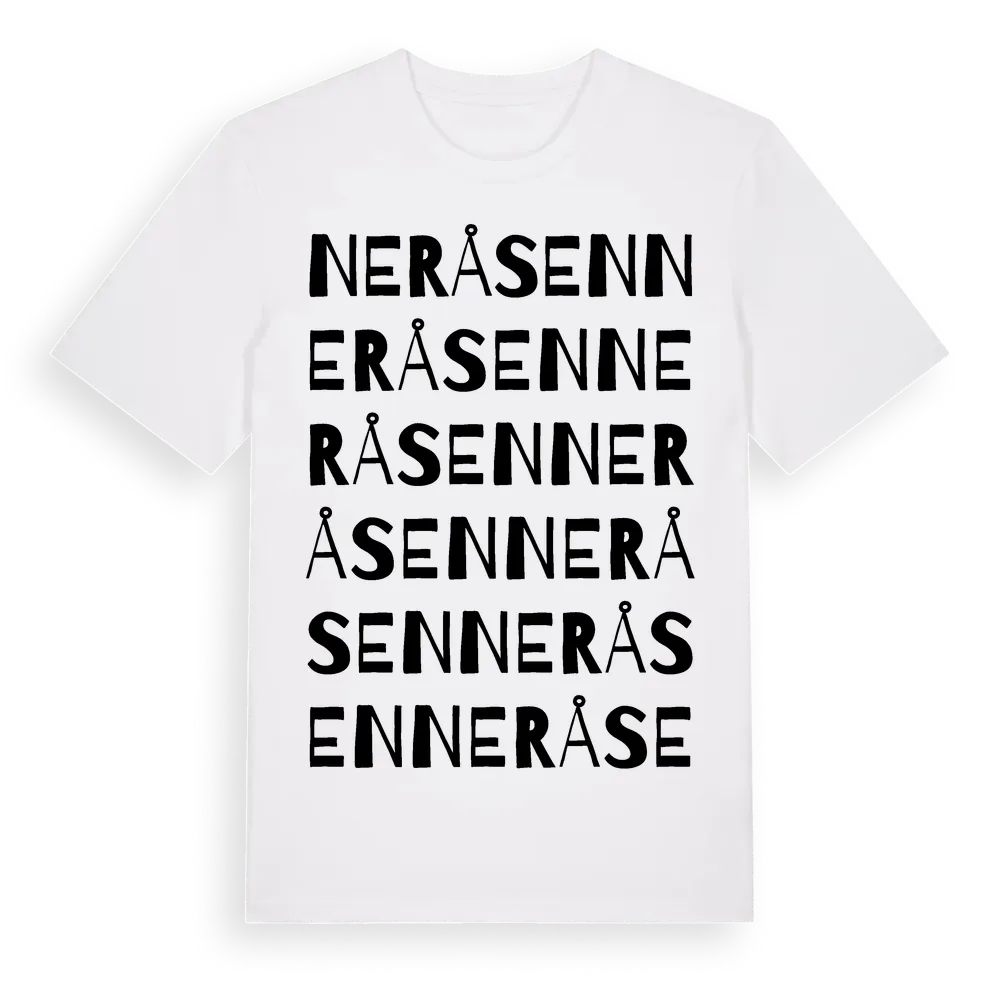 Neråsen ordlek t-shirt är inspirerad av Neråsen i Kronobergs län, Sverige. Tröjan är designad för dig som har en speciell koppling till platsen – oavsett om du bor här, har rötterna här eller bara älskar Neråsen.