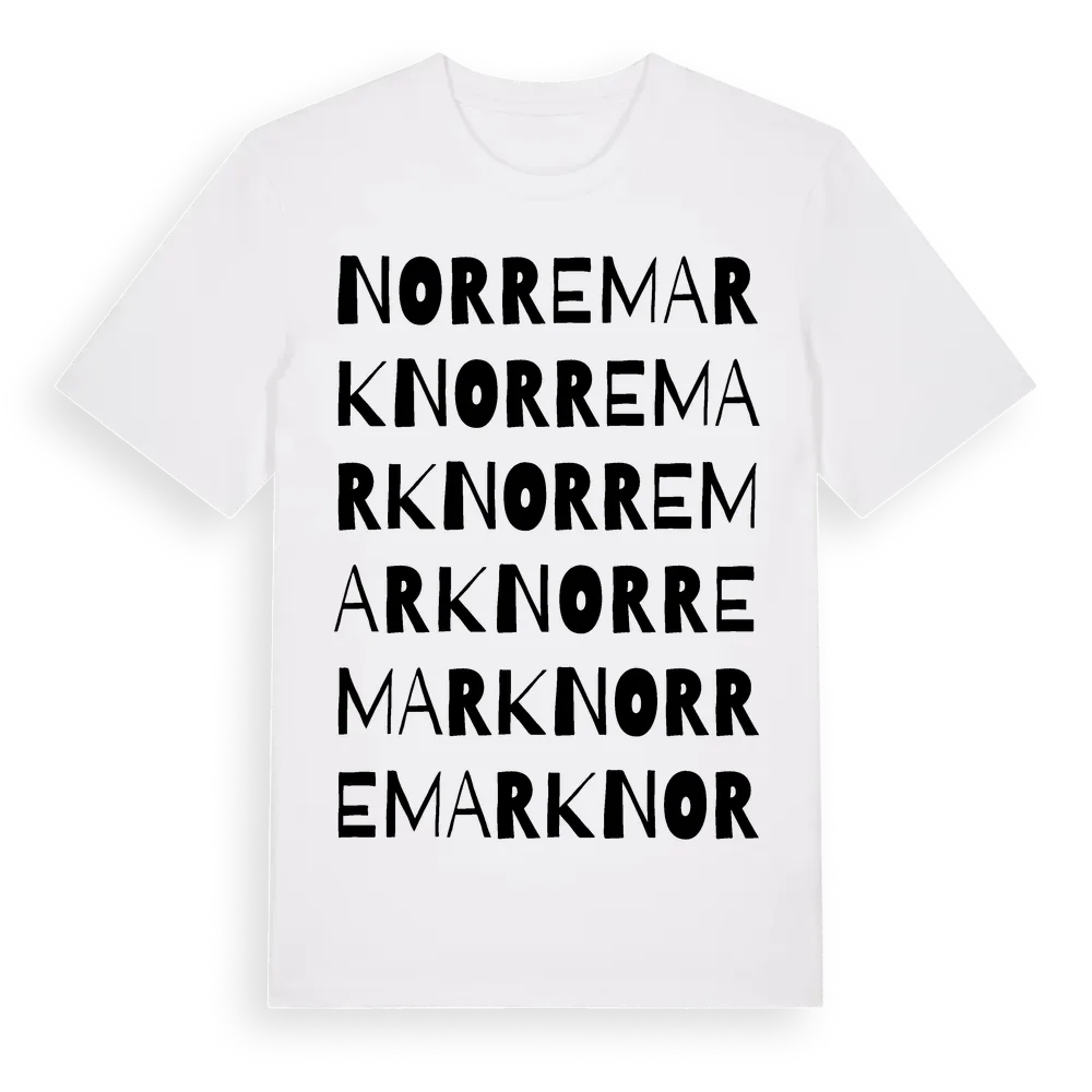 Norremark ordlek t-shirt är inspirerad av stadsdelen Norremark i Kronobergs län, Sverige. Tröjan är designad för dig som har en speciell koppling till platsen – oavsett om du bor här, har rötterna här eller bara älskar Norremark.