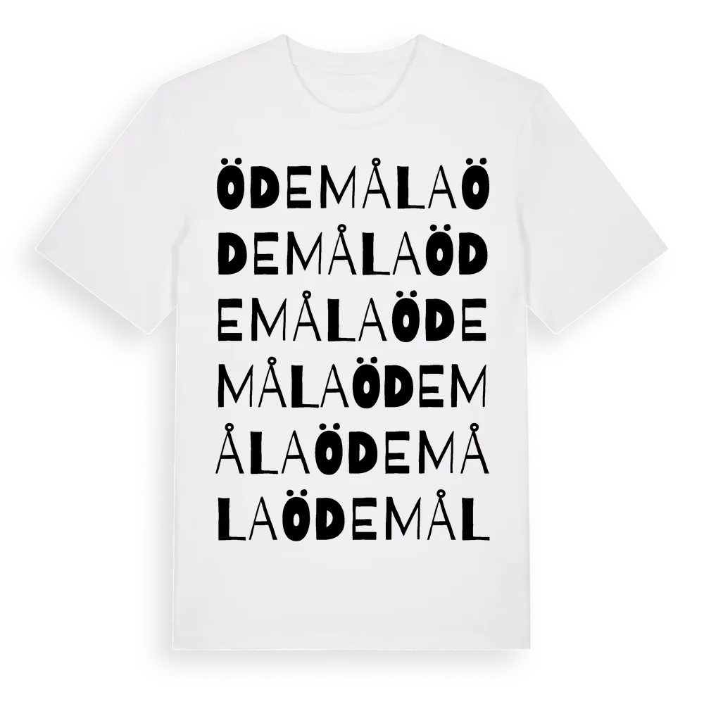 Ödemåla ordlek t-shirt är inspirerad av byn Ödemåla i Kronobergs län, Sverige. Tröjan är designad för dig som har en speciell koppling till platsen – oavsett om du bor här, har rötterna här eller bara älskar Ödemåla.