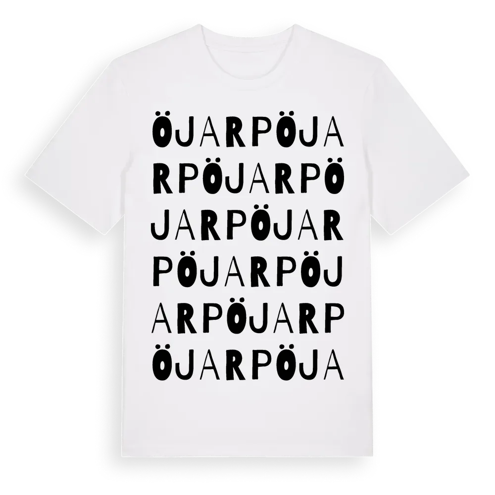 Öjarp ordlek t-shirt är inspirerad av byn Öjarp i Kronobergs län, Sverige. Tröjan är designad för dig som har en speciell koppling till platsen – oavsett om du bor här, har rötterna här eller bara älskar Öjarp.