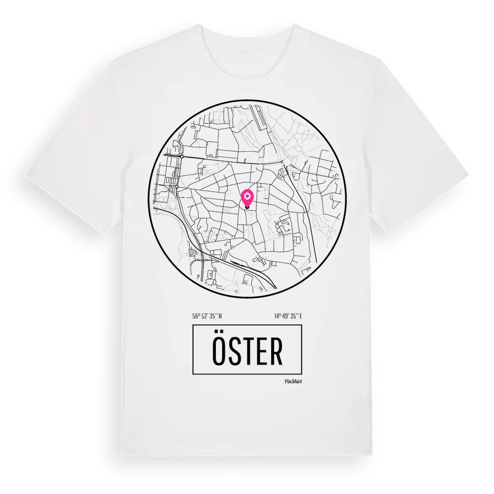 Öster t-shirt är inspirerad av stadsdelen Öster i Kronobergs län, Sverige. Tröjan är designad för dig som har en speciell koppling till platsen – oavsett om du bor här, har rötterna här eller bara älskar Öster.