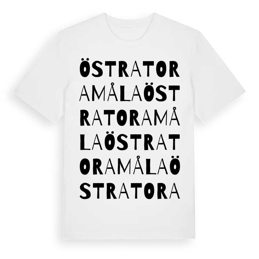 Östra Toramåla ordlek t-shirt är inspirerad av byn Östra Toramåla i Kronobergs län, Sverige. Tröjan är designad för dig som har en speciell koppling till platsen – oavsett om du bor här, har rötterna här eller bara älskar Östra Toramåla.