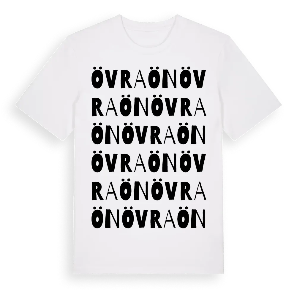 Övraön ordlek t-shirt är inspirerad av Övraön i Kronobergs län, Sverige. Tröjan är designad för dig som har en speciell koppling till platsen – oavsett om du bor här, har rötterna här eller bara älskar Övraön.