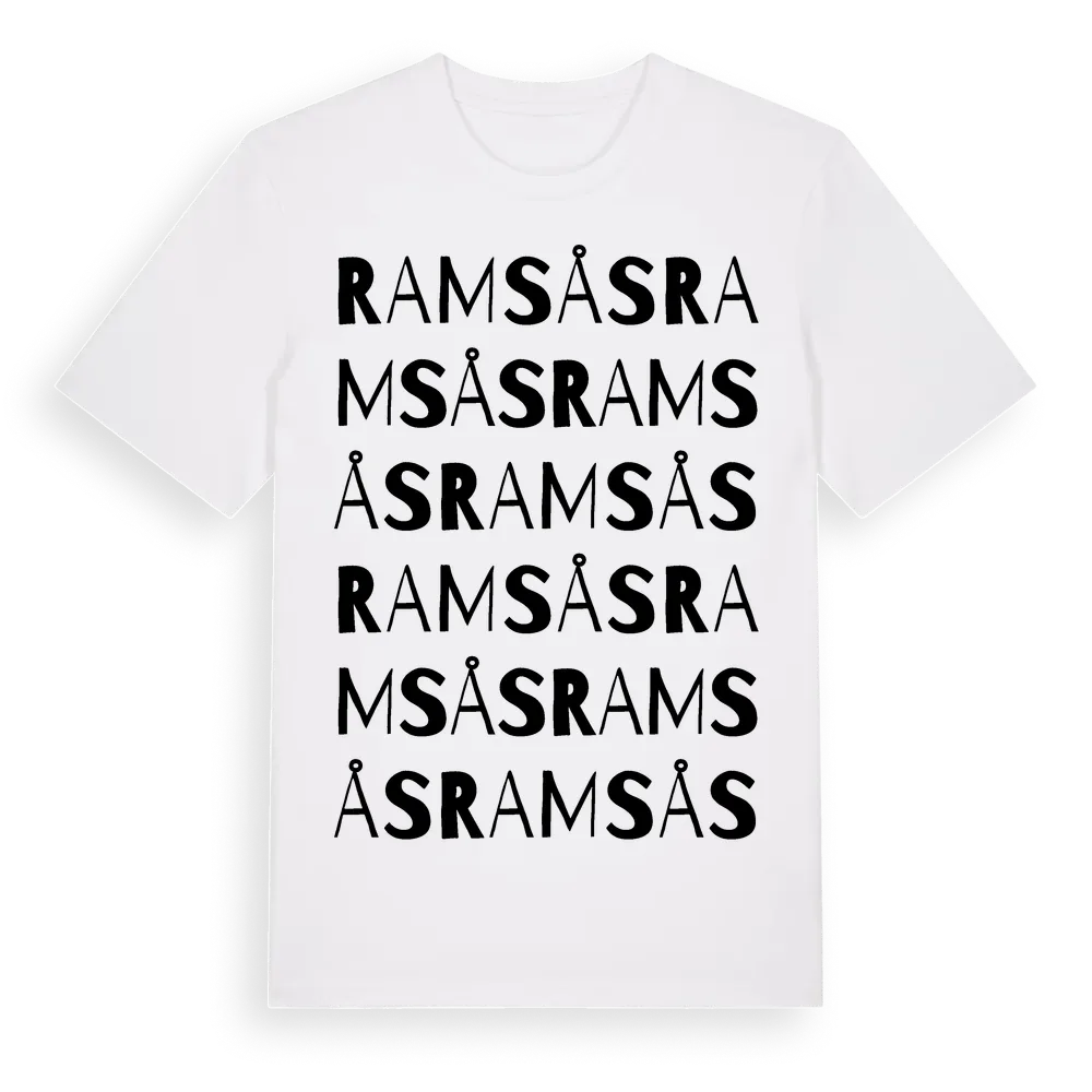 Ramsås ordlek t-shirt är inspirerad av byn Ramsås i Kronobergs län, Sverige. Tröjan är designad för dig som har en speciell koppling till platsen – oavsett om du bor här, har rötterna här eller bara älskar Ramsås.