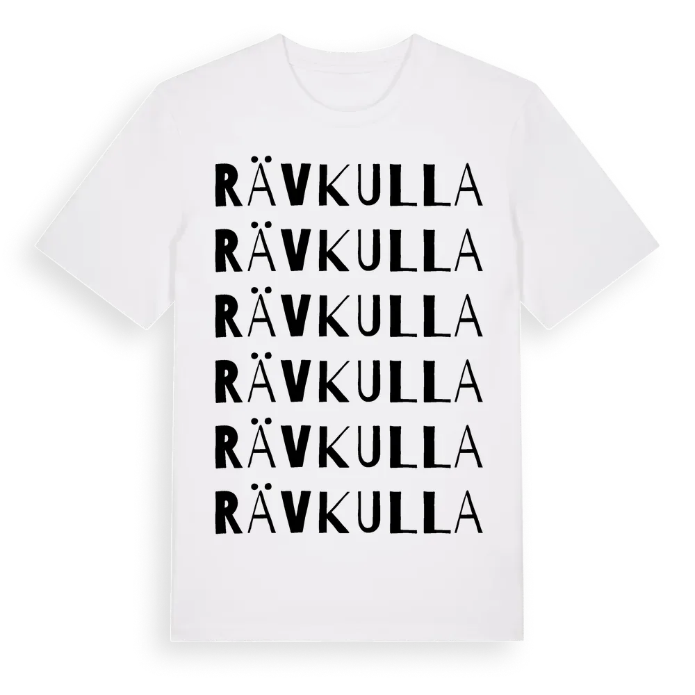 Rävkulla ordlek t-shirt är inspirerad av Rävkulla i Kronobergs län, Sverige. Tröjan är designad för dig som har en speciell koppling till platsen – oavsett om du bor här, har rötterna här eller bara älskar Rävkulla.