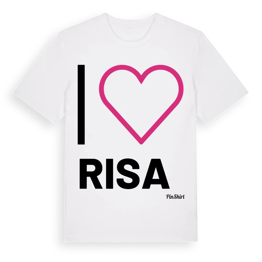 Det klassiska "I ❤ Risa"-motivet i stort format som täcker hela bröstet. För dig som vill visa kärleken till Risa på riktigt. Premium bomull, unisex – från Risa i Kronobergs län.