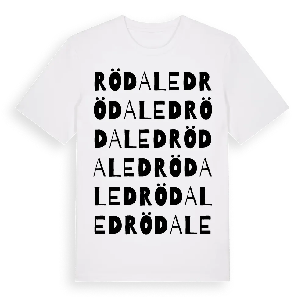 Rödaled ordlek t-shirt är inspirerad av Rödaled i Kronobergs län, Sverige. Tröjan är designad för dig som har en speciell koppling till platsen – oavsett om du bor här, har rötterna här eller bara älskar Rödaled.