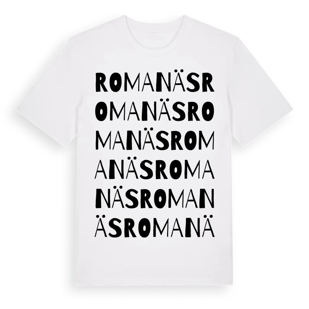 Romanäs ordlek t-shirt är inspirerad av Romanäs i Kronobergs län, Sverige. Tröjan är designad för dig som har en speciell koppling till platsen – oavsett om du bor här, har rötterna här eller bara älskar Romanäs.