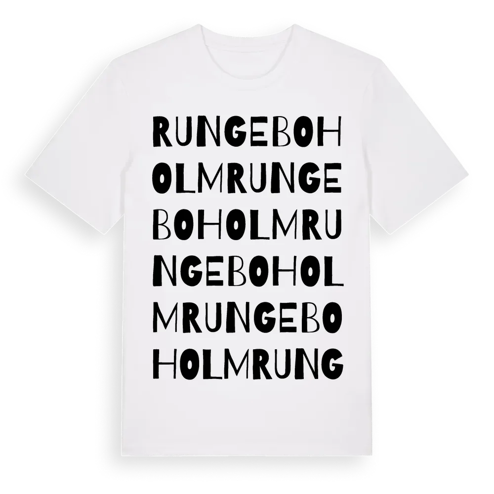Rungeboholm ordlek t-shirt är inspirerad av Rungeboholm i Kronobergs län, Sverige. Tröjan är designad för dig som har en speciell koppling till platsen – oavsett om du bor här, har rötterna här eller bara älskar Rungeboholm.