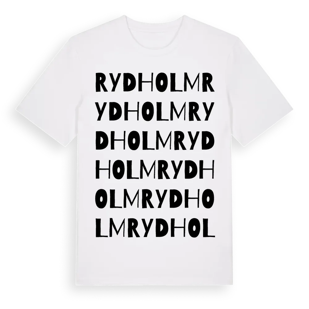 Rydholm ordlek t-shirt är inspirerad av Rydholm i Kronobergs län, Sverige. Tröjan är designad för dig som har en speciell koppling till platsen – oavsett om du bor här, har rötterna här eller bara älskar Rydholm.