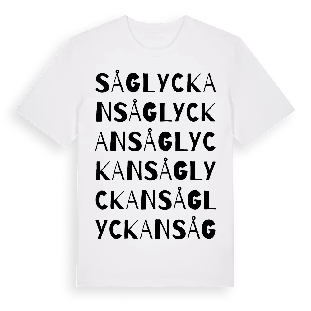 Såglyckan ordlek t-shirt är inspirerad av Såglyckan i Kronobergs län, Sverige. Tröjan är designad för dig som har en speciell koppling till platsen – oavsett om du bor här, har rötterna här eller bara älskar Såglyckan.