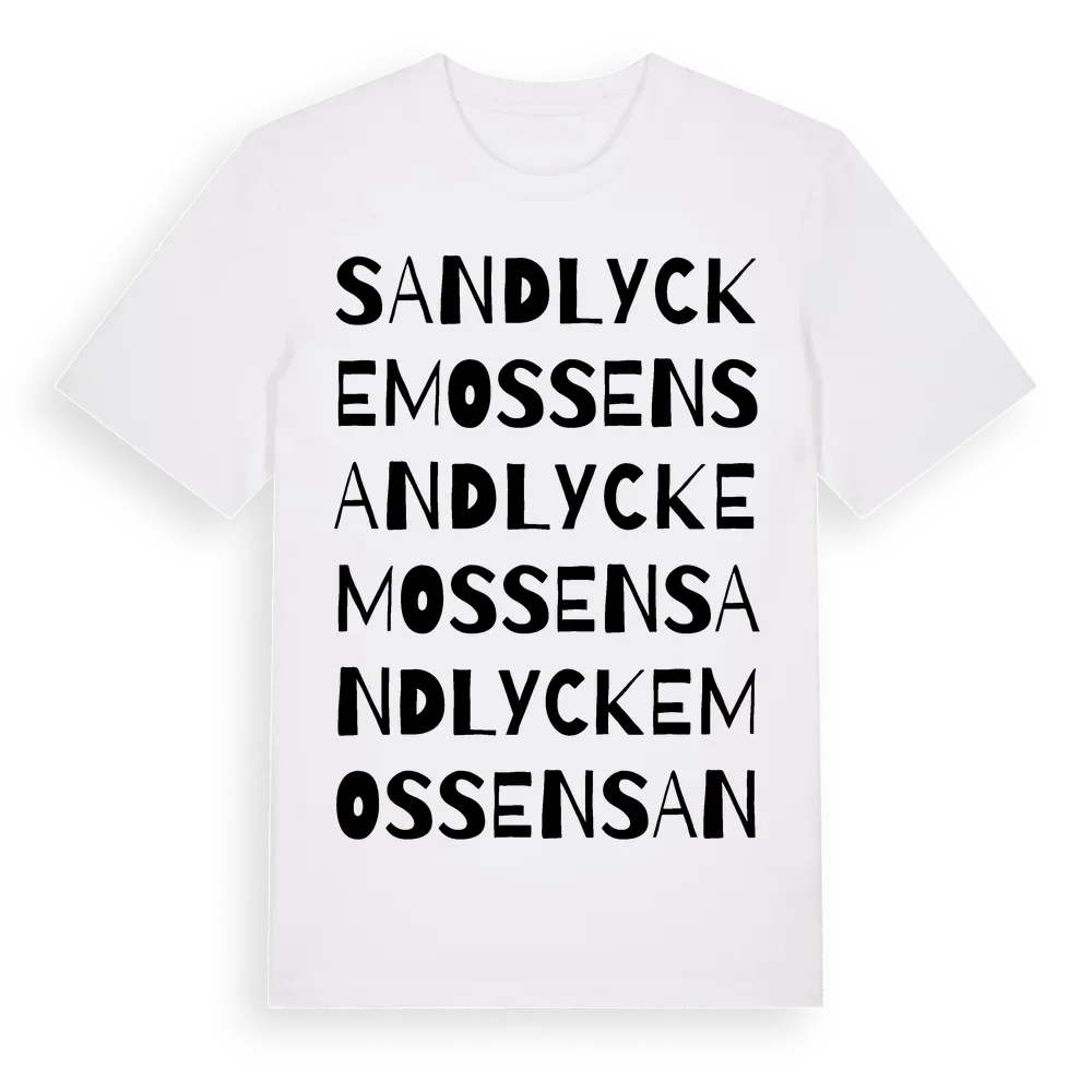 Sandlyckemossen ordlek t-shirt är inspirerad av Sandlyckemossen i Kronobergs län, Sverige. Tröjan är designad för dig som har en speciell koppling till platsen – oavsett om du bor här, har rötterna här eller bara älskar Sandlyckemossen.