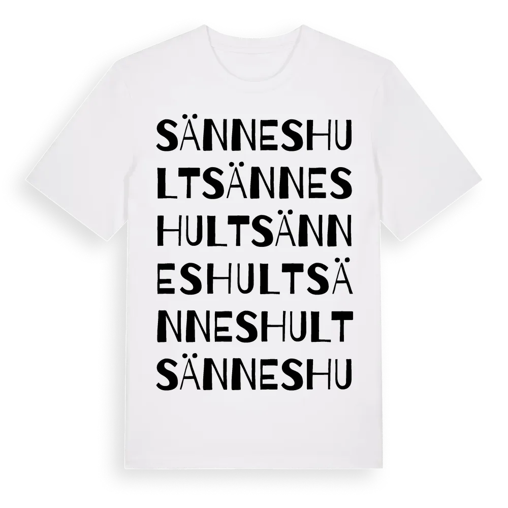 Sänneshult ordlek t-shirt är inspirerad av byn Sänneshult i Kronobergs län, Sverige. Tröjan är designad för dig som har en speciell koppling till platsen – oavsett om du bor här, har rötterna här eller bara älskar Sänneshult.