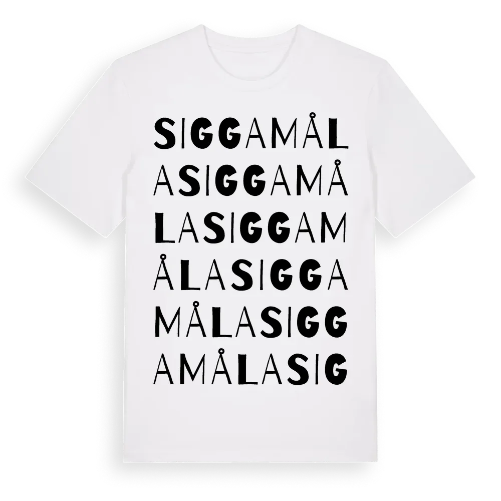 Siggamåla ordlek t-shirt är inspirerad av byn Siggamåla i Kronobergs län, Sverige. Tröjan är designad för dig som har en speciell koppling till platsen – oavsett om du bor här, har rötterna här eller bara älskar Siggamåla.