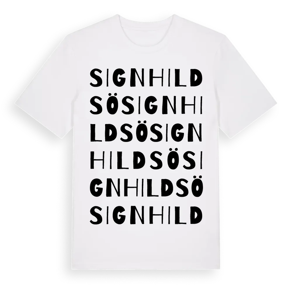 Signhildsö ordlek t-shirt är inspirerad av Signhildsö i Kronobergs län, Sverige. Tröjan är designad för dig som har en speciell koppling till platsen – oavsett om du bor här, har rötterna här eller bara älskar Signhildsö.