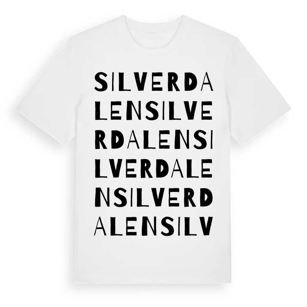 Silverdalen ordlek t-shirt är inspirerad av Silverdalen i Kronobergs län, Sverige. Tröjan är designad för dig som har en speciell koppling till platsen – oavsett om du bor här, har rötterna här eller bara älskar Silverdalen.