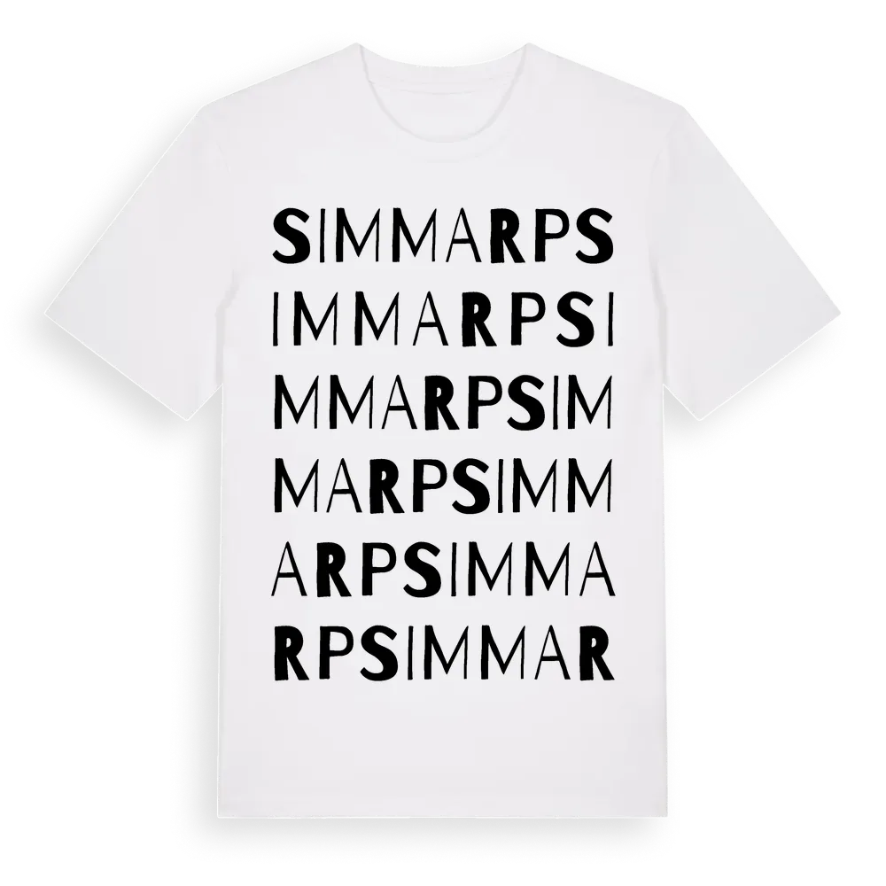 Simmarp ordlek t-shirt är inspirerad av byn Simmarp i Kronobergs län, Sverige. Tröjan är designad för dig som har en speciell koppling till platsen – oavsett om du bor här, har rötterna här eller bara älskar Simmarp.