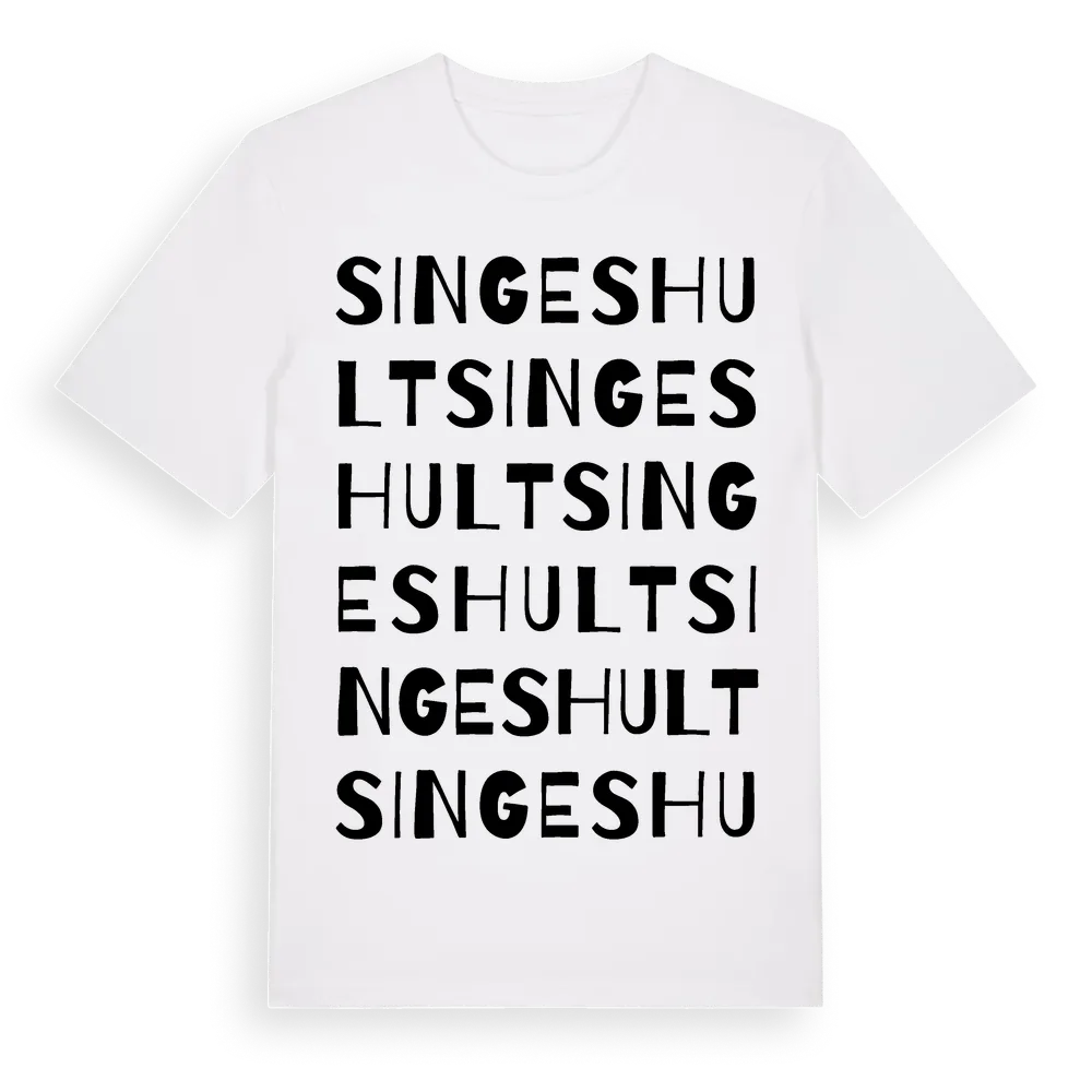 Singeshult ordlek t-shirt är inspirerad av Singeshult i Kronobergs län, Sverige. Tröjan är designad för dig som har en speciell koppling till platsen – oavsett om du bor här, har rötterna här eller bara älskar Singeshult.