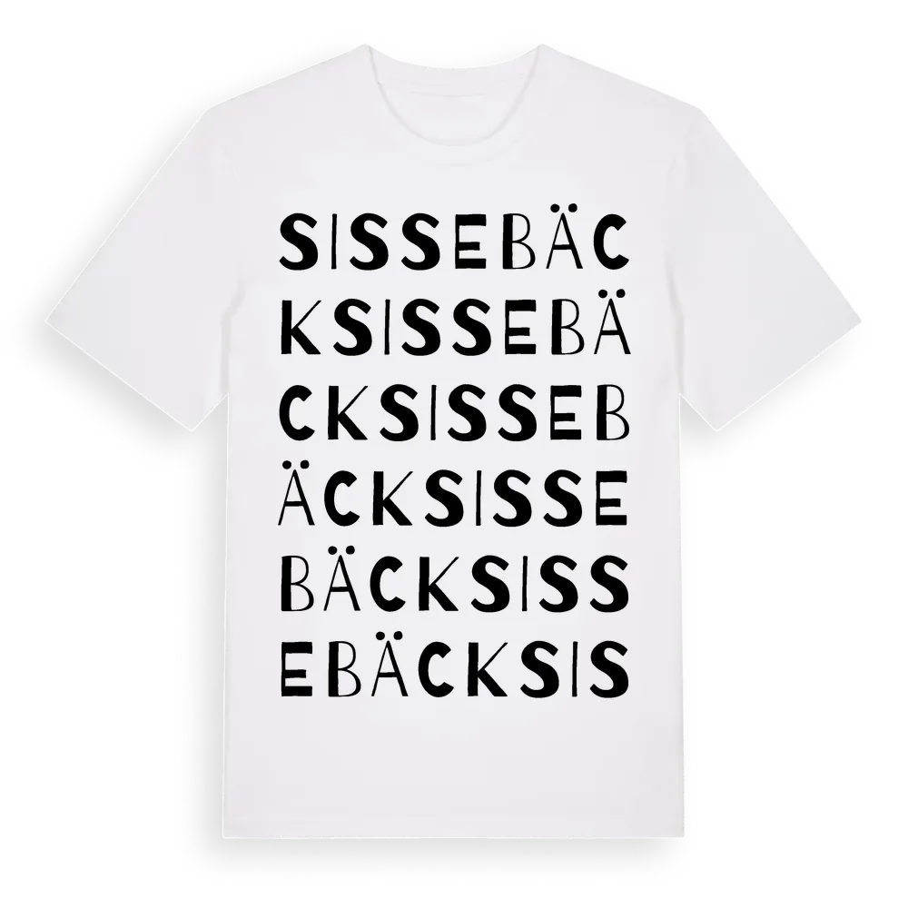 Sissebäck ordlek t-shirt är inspirerad av Sissebäck i Kronobergs län, Sverige. Tröjan är designad för dig som har en speciell koppling till platsen – oavsett om du bor här, har rötterna här eller bara älskar Sissebäck.
