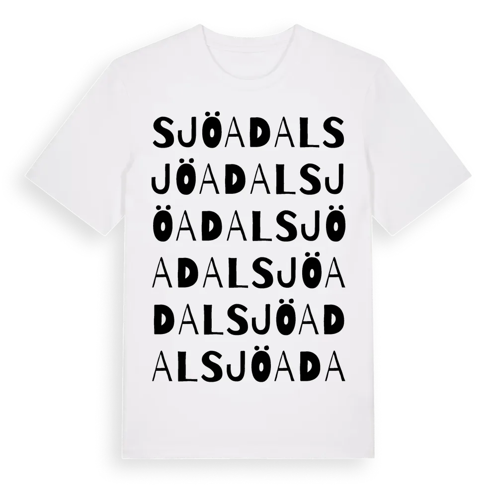 Sjöadal ordlek t-shirt är inspirerad av Sjöadal i Kronobergs län, Sverige. Tröjan är designad för dig som har en speciell koppling till platsen – oavsett om du bor här, har rötterna här eller bara älskar Sjöadal.