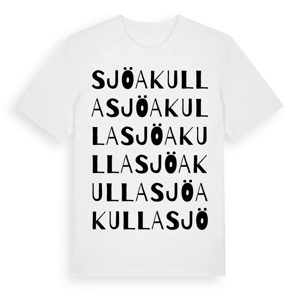 Sjöakulla ordlek t-shirt är inspirerad av Sjöakulla i Kronobergs län, Sverige. Tröjan är designad för dig som har en speciell koppling till platsen – oavsett om du bor här, har rötterna här eller bara älskar Sjöakulla.
