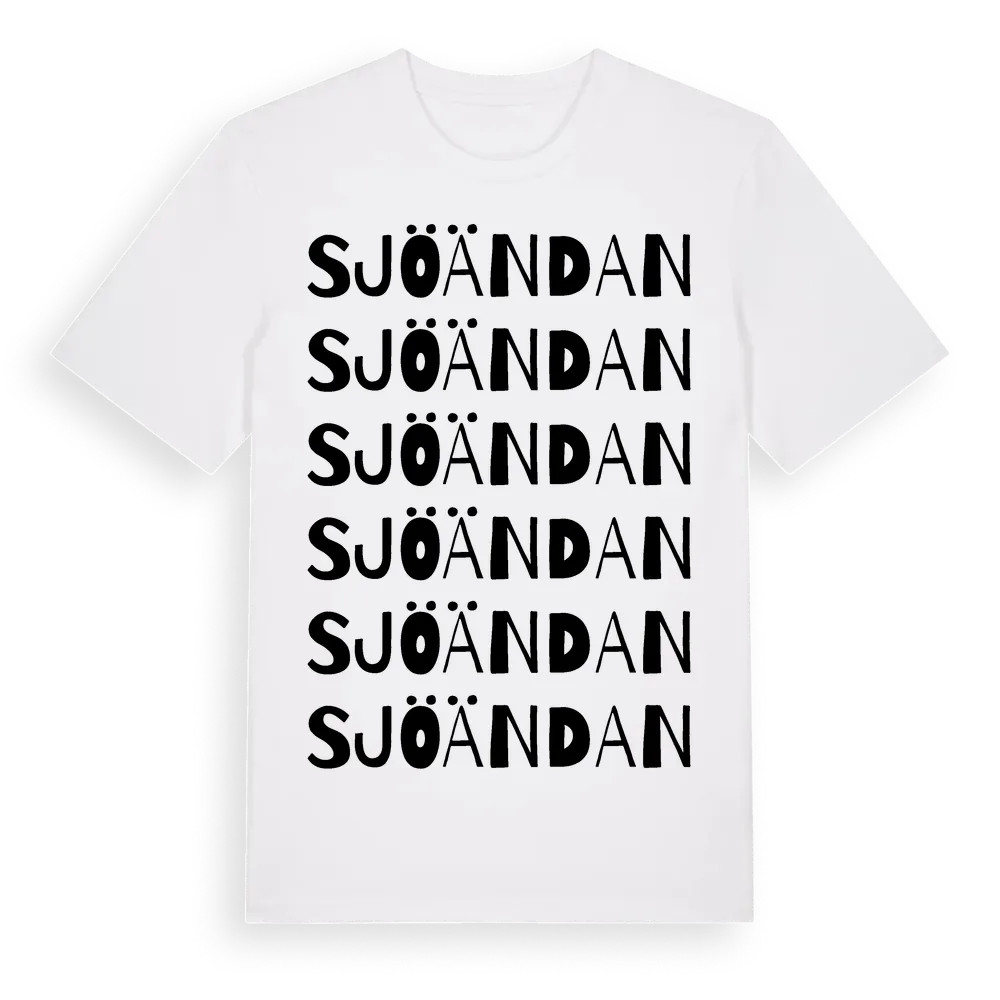 Sjöändan ordlek t-shirt är inspirerad av Sjöändan i Kronobergs län, Sverige. Tröjan är designad för dig som har en speciell koppling till platsen – oavsett om du bor här, har rötterna här eller bara älskar Sjöändan.