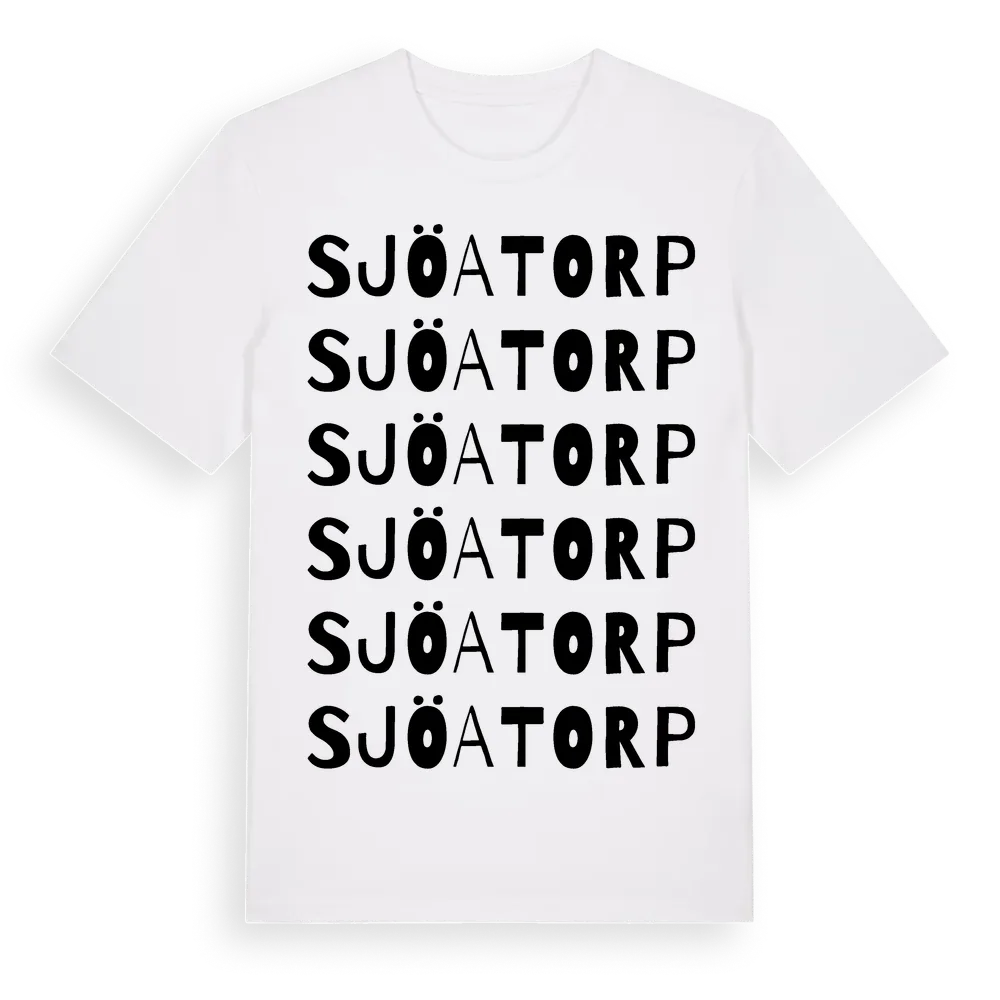 Sjöatorp ordlek t-shirt är inspirerad av byn Sjöatorp i Kronobergs län, Sverige. Tröjan är designad för dig som har en speciell koppling till platsen – oavsett om du bor här, har rötterna här eller bara älskar Sjöatorp.