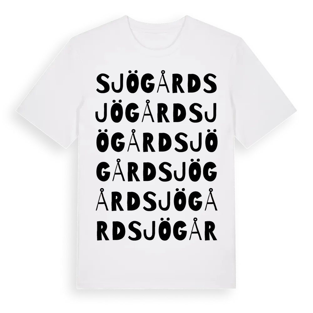 Sjögård ordlek t-shirt är inspirerad av Sjögård i Kronobergs län, Sverige. Tröjan är designad för dig som har en speciell koppling till platsen – oavsett om du bor här, har rötterna här eller bara älskar Sjögård.
