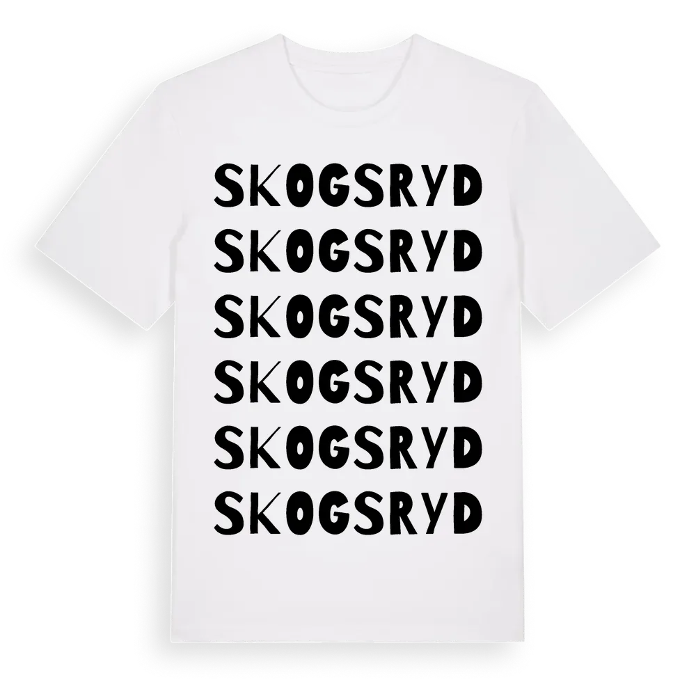 Skogsryd ordlek t-shirt är inspirerad av byn Skogsryd i Kronobergs län, Sverige. Tröjan är designad för dig som har en speciell koppling till platsen – oavsett om du bor här, har rötterna här eller bara älskar Skogsryd.