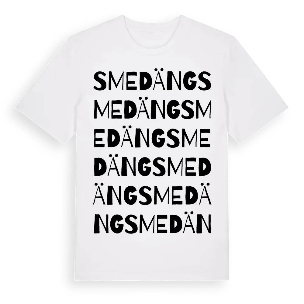 Smedäng ordlek t-shirt är inspirerad av Smedäng i Kronobergs län, Sverige. Tröjan är designad för dig som har en speciell koppling till platsen – oavsett om du bor här, har rötterna här eller bara älskar Smedäng.