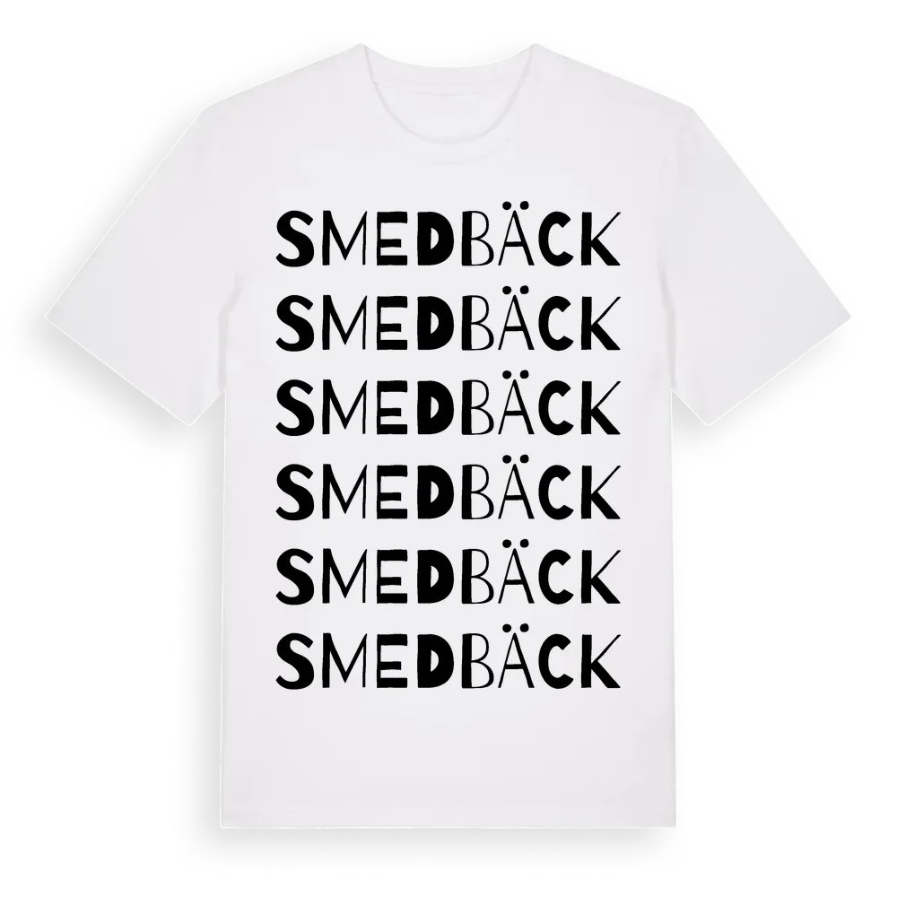 Smedbäck ordlek t-shirt är inspirerad av Smedbäck i Kronobergs län, Sverige. Tröjan är designad för dig som har en speciell koppling till platsen – oavsett om du bor här, har rötterna här eller bara älskar Smedbäck.