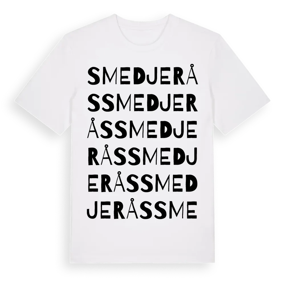 Smedjerås ordlek t-shirt är inspirerad av byn Smedjerås i Kronobergs län, Sverige. Tröjan är designad för dig som har en speciell koppling till platsen – oavsett om du bor här, har rötterna här eller bara älskar Smedjerås.
