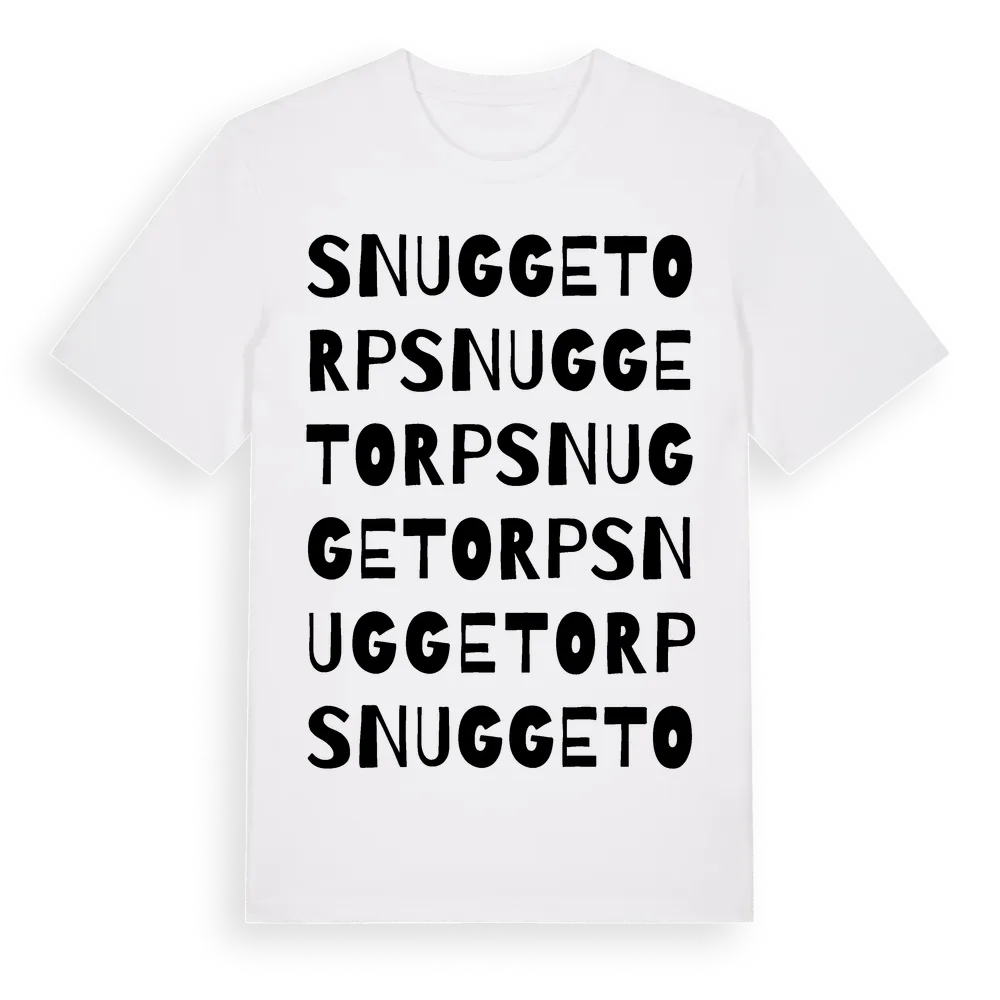 Snuggetorp ordlek t-shirt är inspirerad av Snuggetorp i Kronobergs län, Sverige. Tröjan är designad för dig som har en speciell koppling till platsen – oavsett om du bor här, har rötterna här eller bara älskar Snuggetorp.