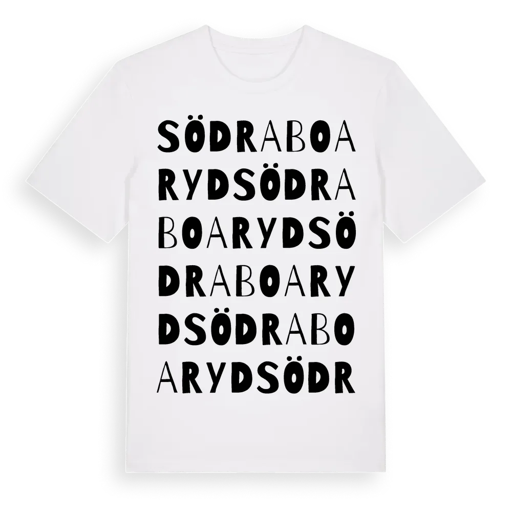 Södra Boaryd ordlek t-shirt är inspirerad av byn Södra Boaryd i Kronobergs län, Sverige. Tröjan är designad för dig som har en speciell koppling till platsen – oavsett om du bor här, har rötterna här eller bara älskar Södra Boaryd.