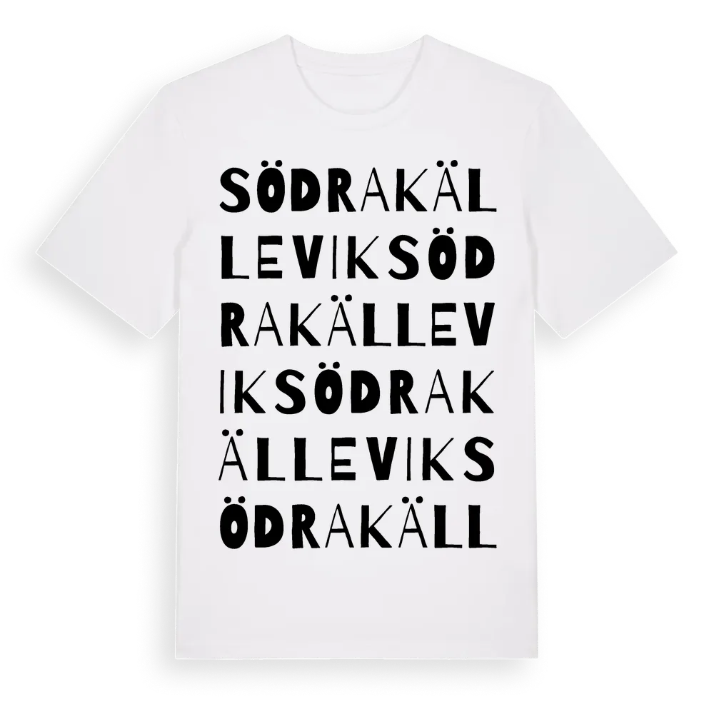 Södra Källevik ordlek t-shirt är inspirerad av Södra Källevik i Kronobergs län, Sverige. Tröjan är designad för dig som har en speciell koppling till platsen – oavsett om du bor här, har rötterna här eller bara älskar Södra Källevik.