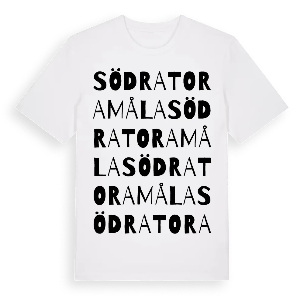 Södra Toramåla ordlek t-shirt är inspirerad av byn Södra Toramåla i Kronobergs län, Sverige. Tröjan är designad för dig som har en speciell koppling till platsen – oavsett om du bor här, har rötterna här eller bara älskar Södra Toramåla.